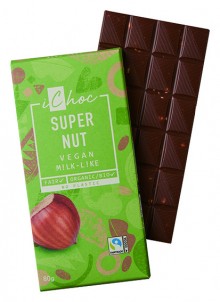 なめらかな口どけのライスミルクチョコにタイガーナッツパウダーとローストしたへーゼルナッツを丸ごと加えた食感楽しいチョコレート。