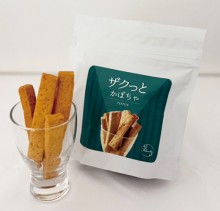 野菜の甘みを活かしたシンプルなスティッククッキー。植物性の原料のみを使用し、生地を幾層にも重ね、自然の甘みとサクッとした食感に焼き上げています。<原材料>小麦粉(国産)、粗糖、菜種油、かぼちゃパウダー(国産)、食塩