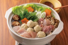 <原材料>鶏ガラスープ、鶏もも肉、鶏むね肉、鶏団子(鶏むね肉、鶏もも肉、鶏皮、玉ねぎ、パン粉、長芋、鶏卵、馬鈴薯澱粉、砂糖、白だし、食塩、白こしょう