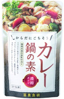 スパイシーなカレーを豆乳と和風だしでマイルドに仕上げました。洋風・和風を問わず、どんな具材にも合います。昆布エキス、たん白加水分解物は不使用。