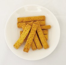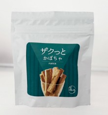 野菜の甘みを活かしたシンプルなスティッククッキー。植物性の原料のみを使用し、生地を幾層にも重ね、自然の甘みとサクッとした食感に焼き上げています。<原材料>小麦粉(国産)、粗糖、菜種油、かぼちゃパウダー(国産)、食塩