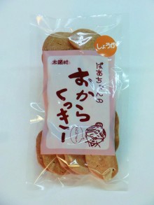 <原材料>小麦粉(国産)、鶏卵、おから(国産大豆:遺伝子組み換えでない)、なたね油、砂糖(粗製糖)、生姜(国産)
