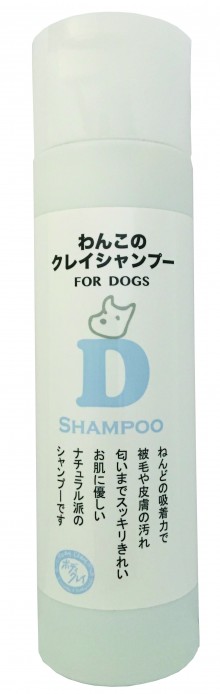 ねんどの吸着力で、被毛や 皮膚の汚れニオイまですっき りきれい。 お肌にやさしいナチュラル派 のシャンプーです。