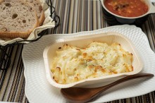 国産小麦のマカロニに低温殺菌乳、よつ葉バター、国産小麦粉、玉ねぎをよく練って作ったホワイトソースを和えたシンプルなグラタンです。