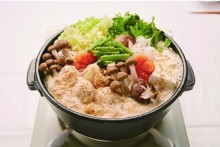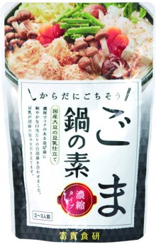<原材料>だし(そうだ鰹節、椎茸、こんぶ)、無調整豆乳、もち米飴、練り胡麻、醤油(小麦を含む)、甜菜糖、鶏ガラスープ、菜種サラダ油(遺伝子組み換えでない)、食塩、米味噌、金すりごま、ごま油、もち米でん粉、いわしエキス、生姜、オニオンエキス、唐辛子
